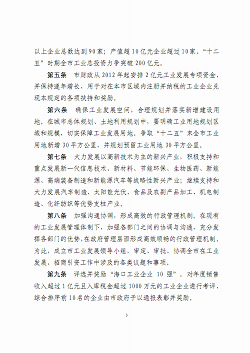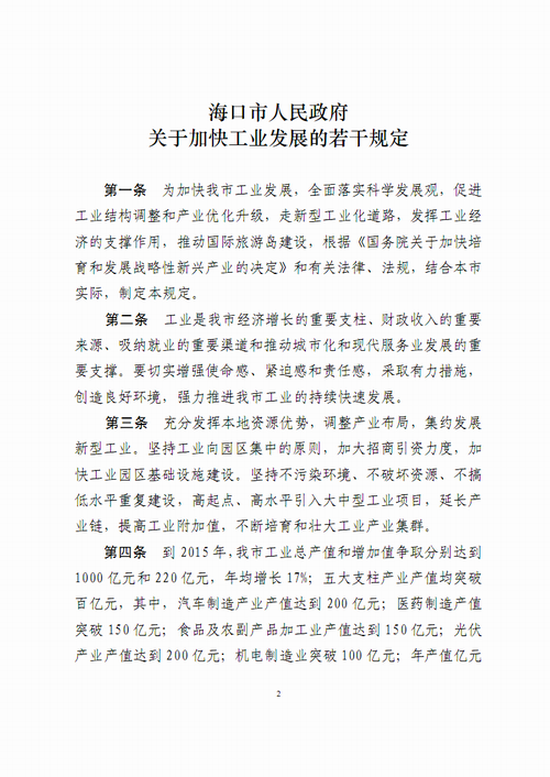 海口市人民政府关于加快工业发展的若干规定(海府〔2011〕105 号)