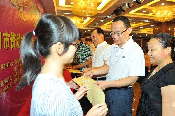 8月31日上午,“青春携手·爱心圆梦”2012年海口市资助贫困大学生爱心助学金发放仪式在海口赛仑吉地大酒店举行,市人大常委会副主任陈毓芬、市政协副主席林道本和共青团海口市委等市相关部门的领导现场给献爱心捐助单位代表颁发荣誉证书,也给受资助的学生发放助学金。我会捐赠十万元整资助今年海口高考贫困生,贡献爱心的义举得到了市委、市政府和社会各界的认可和好评。
