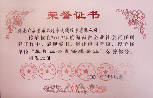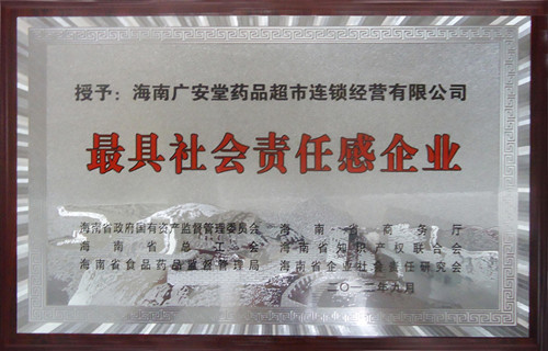 | 海南广安堂药业有限公司荣获“最具社会责任感企业” 、“全国就业先进企业” |