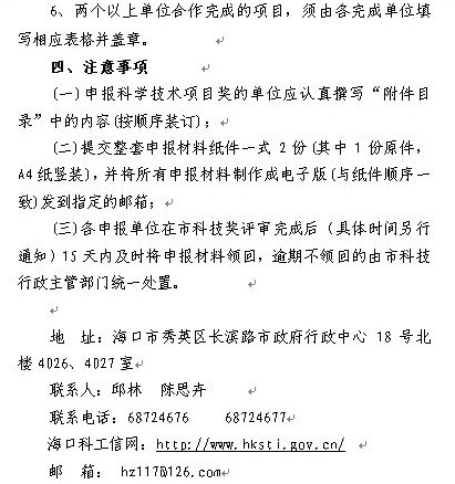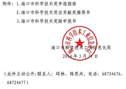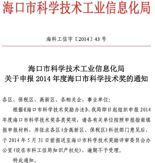 关于申报2014年度海口市科学技术奖的通知