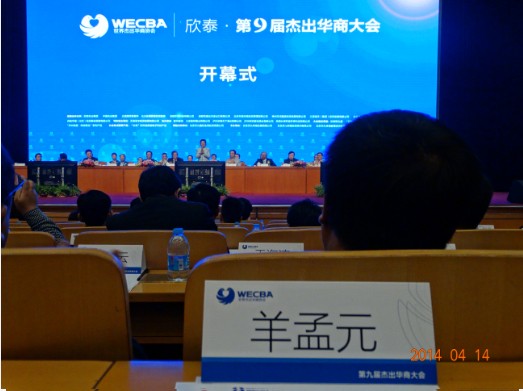 2014年4月14--16日,一年一度的全球华商盛会第九届杰出华商大会在京成功召开。十届全国人大副委员长顾秀莲、泰国前副总理披尼、莫桑比克前总书记托梅、著名经济学家清华大学教授李稻葵等政界、学术界名流精彩演讲,央视著名主持人朱军、马洪涛倾情主持,杨钰莹、费翔、李金斗等明星登台献艺。1400位杰出华商欢聚一堂,共谋合作发展。 为期三天的会议安排了"非诚勿扰"投融资项目电视"相亲会"、分行业合作对接洽谈会、成功商业模式全国联营合作对接洽谈会、"资本-项目面对面"、管理升级论坛、华商之歌大型文艺晚会等30多项丰富务实的精彩活动。现场签约382项、金额569亿元。会议取得丰硕成果,大会成功召开得到与会代表高度评价。 我会常务副会长兼秘书长羊孟元应邀作为海南商界代表参加了会议。羊孟元在分组座谈会上介绍我会发展情况和海南国际旅游岛建设情况等。来自各地的企业家对海口、海南的发展特别是对海南发展养生、养老产业,文化教育产业、现代农业和南药种植加工等表示极大兴趣,纷纷表示尽快到海南考察投资发展。