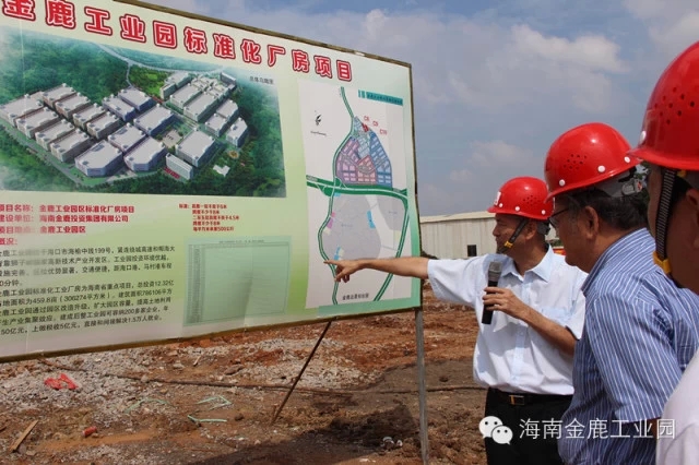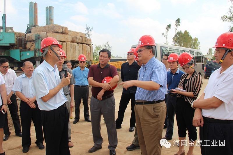 海南金鹿工业园标准化工业厂房项目,一直以来受到市委、市政府、高新区管委会及相关部门的大力支持。10月27日,省委常委、海口市市委书记陈辞,海口市副市长鞠磊,海口国家高新技术产业开发区管委会党工委书记方中里等一行亲临海南金鹿工业园标准化工业厂房项目进行视察。 首先,陈辞书记一行在海南金鹿投资集团有限公司董事长叶茂的陪同下考察了金鹿工业园标准化工业厂房项目一期C16栋的建设情况,最后来到了C8、C9、C10栋施工现场。 在施工现场,叶茂董事长向陈辞书记及各位领导介绍了项目的详细情况。项目于6月28日开始动工,预计年底可以完成一期3万平方米的建设,2015年6月可完成一期工程12万平方米的建设。