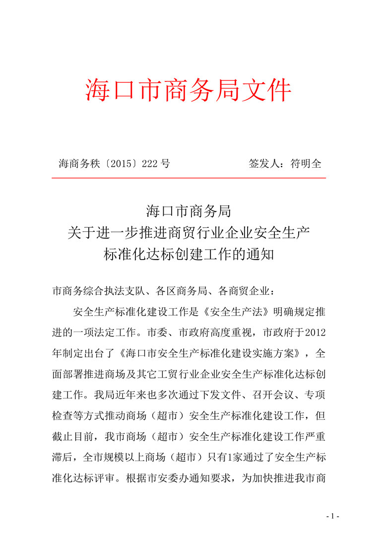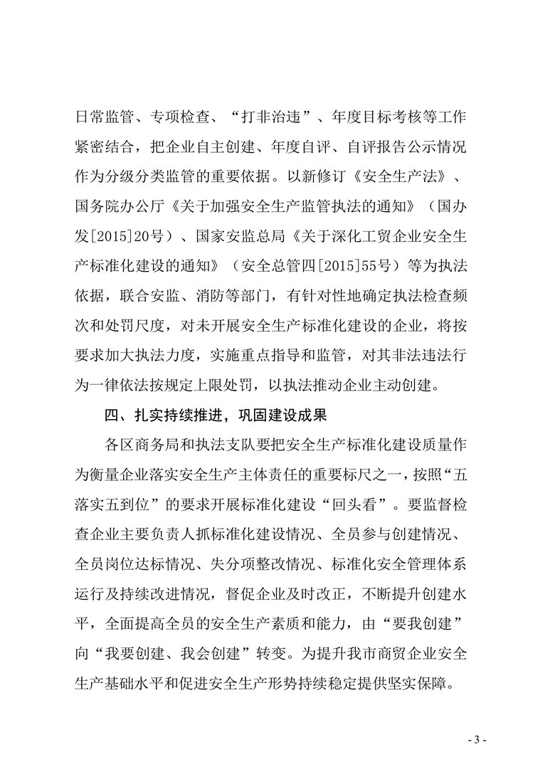 关于进一步推进商贸行业企业安全生产标准化达标创建工作的通知