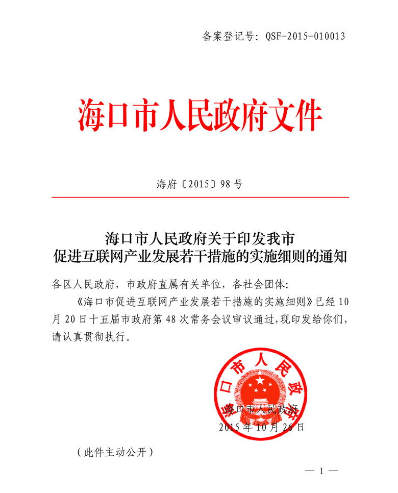 海口市人民政府关于印发我市促进互联网产业发展若干措施的实施细则的通知