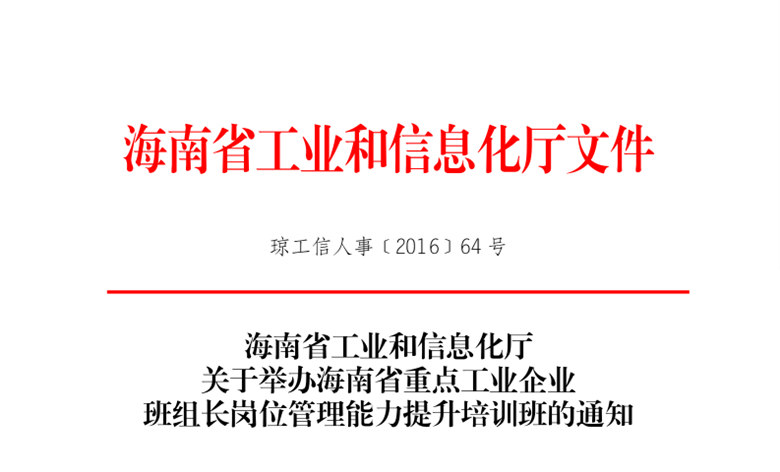 海南省工业和信息化厅关于举办海南省重点工业企业班组长岗位管理能力提升培训班的通知