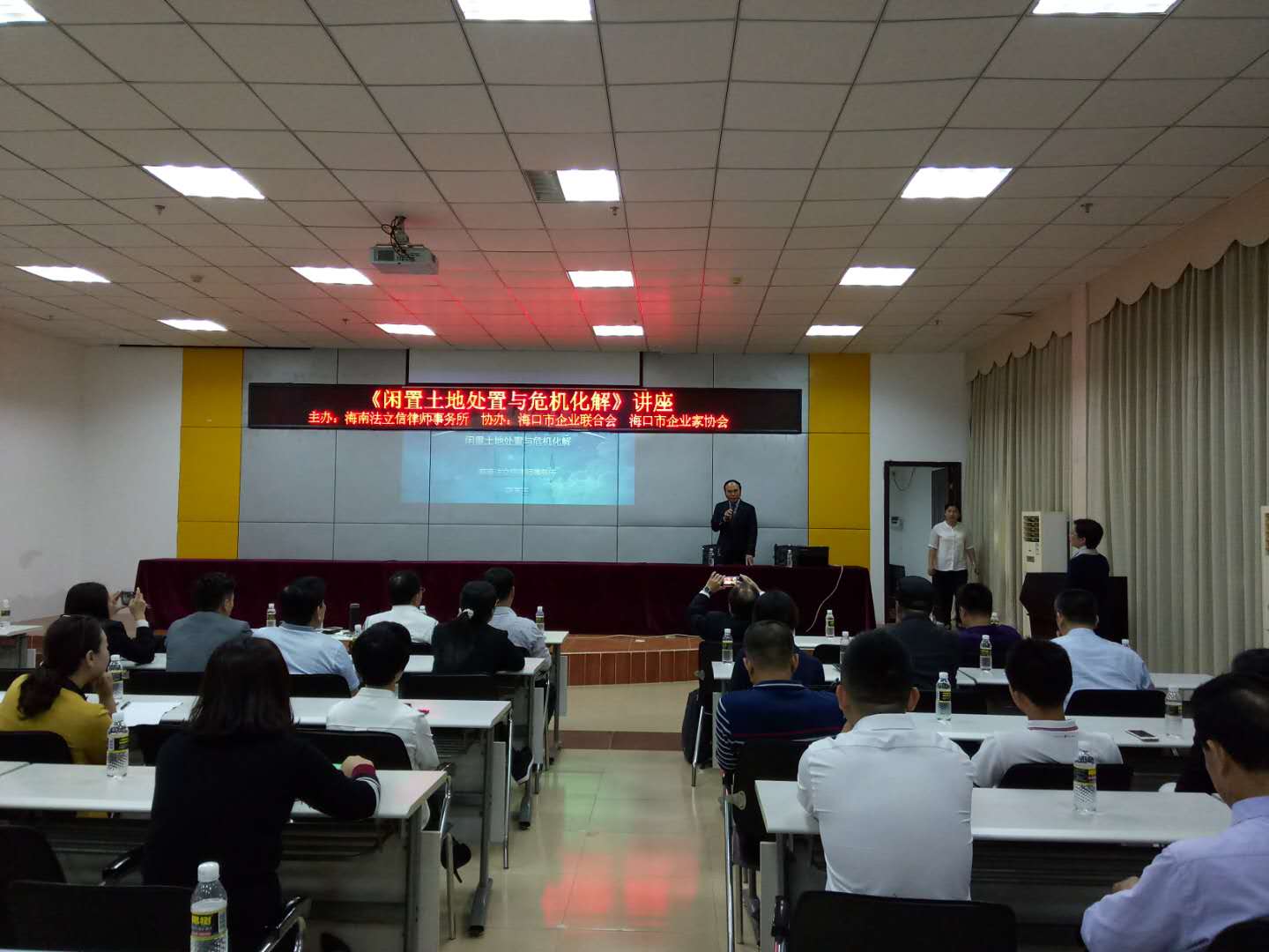 4月17日,由海南法立信律师事务所主办、海口市企业联合会、海口市企业家协会协办,主题为《闲置土地处置与危机化解》讲座在海南金鹿投资集团有限公司会议室举办。执行会长兼秘书长羊孟元、执行会长陈镇雄、副会长王清池、张 杰,以及从事与房地产开发相关的企业负责人五十多人参加讲座学习。省律师协会原会长、海南法立信律师事务所主任廖向琦带领海南法立信律师事务所的律师团队到场讲解。 羊孟元主持讲座。廖向琦律师就为何举办此次《闲置土地处置与危机化解》,作了陈述和展望。接着,郑芳玉律师就闲置土地处置问题围绕六大模块:一、 闲置土地认定与处置的主要法律依据;二、如何界定闲置土地;三、土地闲置原因认定与处置结果;四、闲置土地处置程序;五、危机化解;六、用判例说话等进行了讲解。黄忠律师介绍了企业如何应对闲置土地处置的相关策略。企业家们认真聆听,受益匪浅。 最后,海南法立信律师事务所的律师团队和在座的部分企业家进行了互动问答并合影留念。