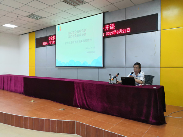 9月21日上午,海口市企业联合会、海口市企业家协会举办“金税三系统下的税务风险防控”公开课在海南金鹿投资集团有限公司会议室举行。 来自罗牛山股份有限公司、海南美都投资有限公司、椰树集团有限公司等会员企业相关部门负责人、财务人员等一百余人参加了公开课学习。 执行会长兼秘书长羊孟元主持并讲话。羊孟元说,随着金税三期在全国的全面推行,以及五证合一、国税地税合并等政策的相继落地,政策的调整变化对企业产生了不同程度的影响。很多企业因缺乏对全新政策的了解,在实际操作中产生诸多疑虑,从而影响了企业税务筹划,甚至给企业造成不必要的损失。为此,今天,海口市企业联合会、海口市企业家协会在此举办“金税三系统下的税务风险防控”公开课,旨在帮助广大会员企业做好税务风险防范。 公开课由我省知名税法专家、海南大华光明税务师事务所所长韦飞俊主讲。在课中,韦所长深度解读了现有政策,并全面剖析了问题原因,为企业提供了行之有效的风险防控措施与应对技巧,帮助企业提前做好人力成本筹划。为时两个小时的公开课,学员认真细致听讲,课堂自始至终座无虚席。 最后,韦所长还与企业代表互动,认真回答企业关心的问题。
