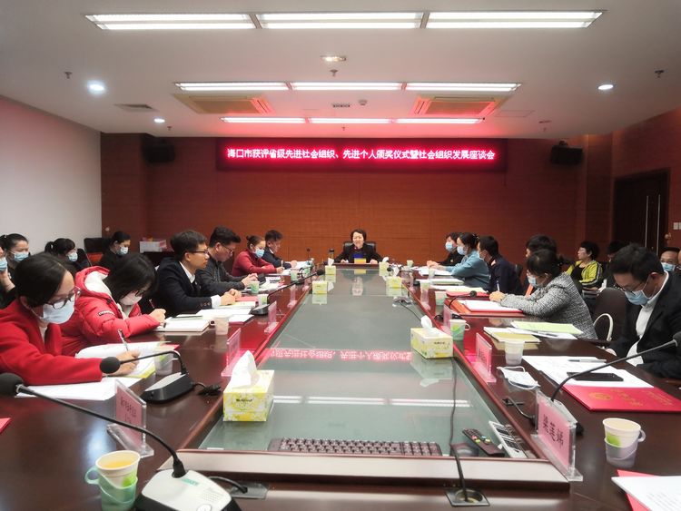 为贯彻落实习近平总书记对社会组织工作的系列重要指示批示精神和省委省政府、市委市政府对社会组织工作的部署要求,引导和激励社会组织服务国家、服务社会、服务群众、服务行业,进一步统一思想、明确思路,促进我市社会组织高质量发展,发挥社会组织在海南自由贸易港建设中的积极作用。12月29日下午,市民政局隆重举行海口市获评省级先进社会组织、社会组织先进个人授牌颁奖仪式暨社会组织发展座谈会。海口市民政局党组书记、局长淡利锋出席,海口市民政局党组成员、副局长冯柳主持会议。 会上,市民政局冯柳副局长宣读了《海南省民政厅 海南省人力资源和社会保障厅关于表彰海南省先进社会组织、社会组织先进个人的决定》。经推荐单位和评先工作领导小组办公室两轮审核、公示,海口市15家社会组织被授予“海南省先进社会组织”、16名个人被授予“海南省社会组织先进个人”称号。