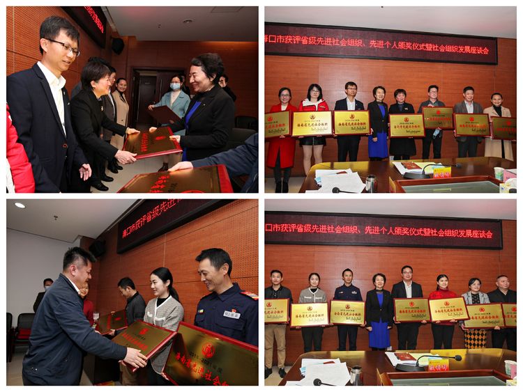 市民政局淡利锋局长、冯柳副局长,市社会组织管理局、市社会组织事务中心负责人向海口市获评海南省先进社会组织授牌、向获评海南省社会组织先进个人颁奖。
