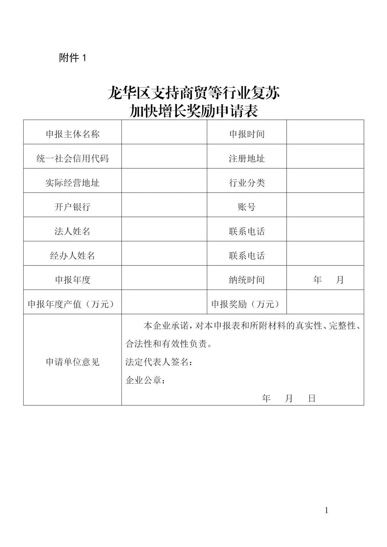 1.龙华区支持商贸等行业复苏加快增长奖励申请表