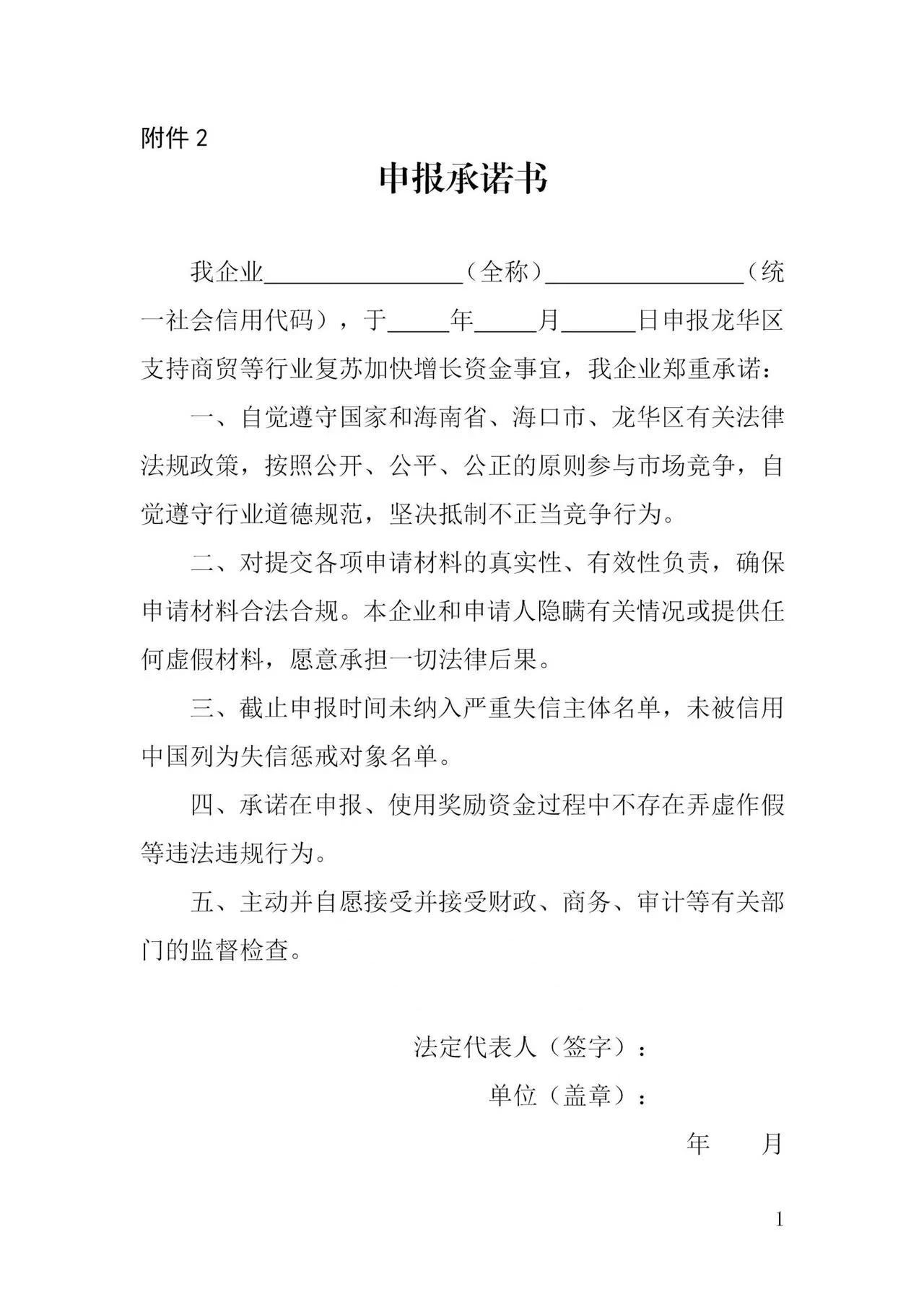 2.申报承诺书