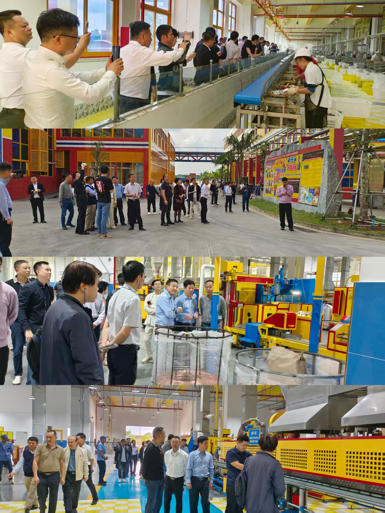 在椰树集团有限公司党委副书记蔡仁金的陪同下,企业家们走进了生产车间,企业家们参观了制罐车间、椰汁多品种车间、椰果车间、椰子粗加工车间的参观路线,全方位领略椰树集团的生产运营体系。在制罐车间,自主创新设计的全自动送罐生产线令人瞩目,通过链条输送机实现整垛罐体无压力输送,大幅提升效率并降低凹罐率;椰汁多品种车间内,世界首创的多生产线融合设计让人印象深刻,四条不同类型生产线协同运转,可灵活产出多种规格产品。从椰子原料处理到椰汁无菌灌装,从椰果培育到成品封装,智能化生产流程与严苛品质管控,让企业家们直观感受了“国宴饮料生产参观示范基地”的实力 。