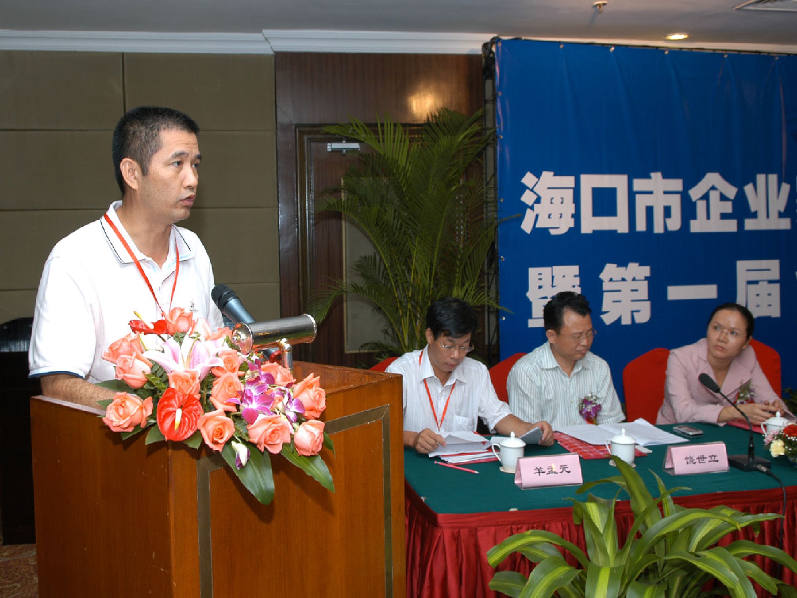 海口市工商联(总商会)专职副会长王惠来在海口市企业家协会成立大会暨第一届会员代表大会上讲话