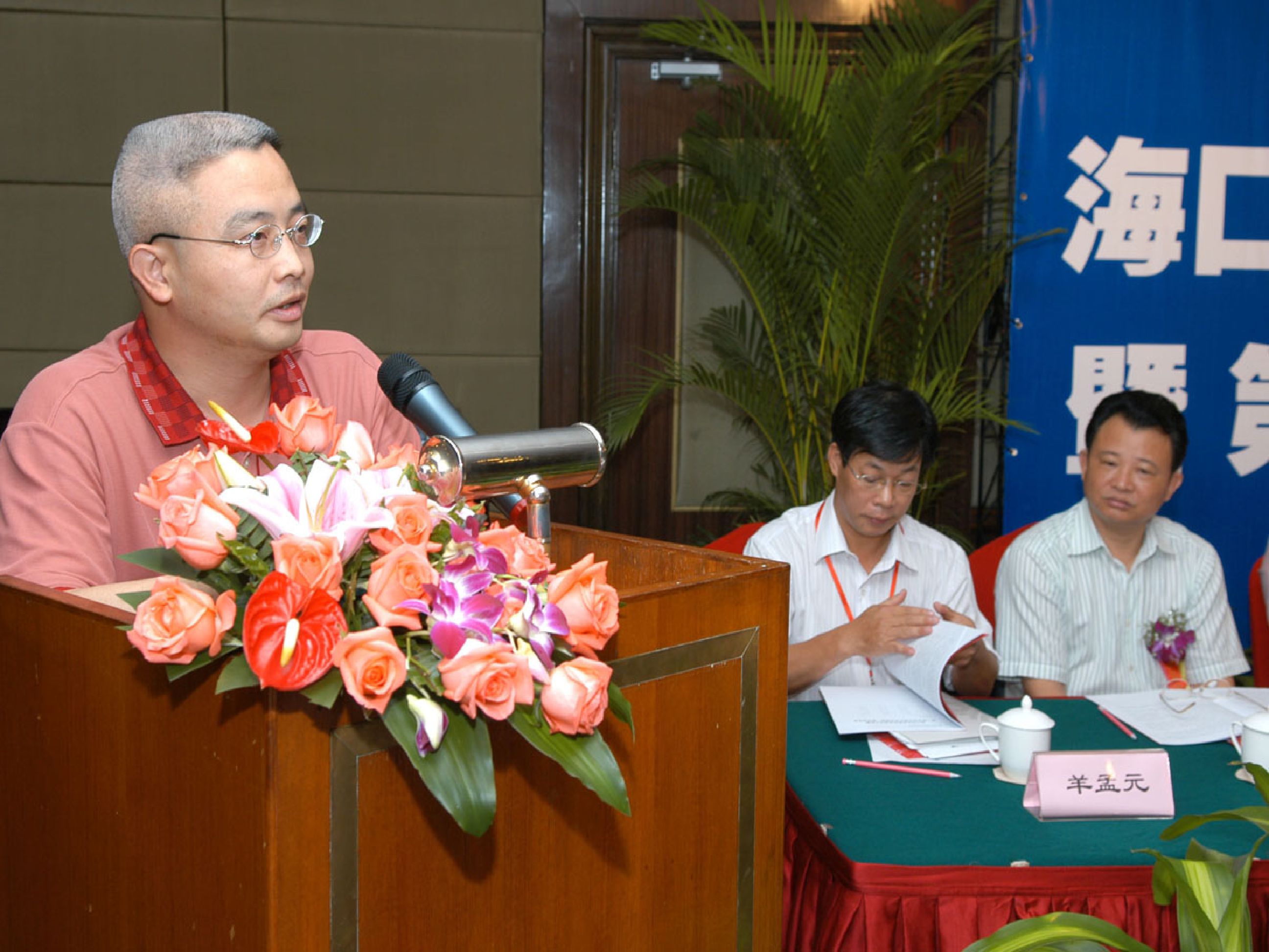本会会长、海南金鹿农机发展股份有限公司董事长叶茂在海口市企业家协会成立大会暨第一届会员代表大会上致辞