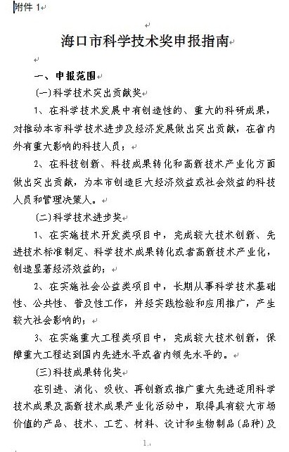 关于申报2014年度海口市科学技术奖的通知