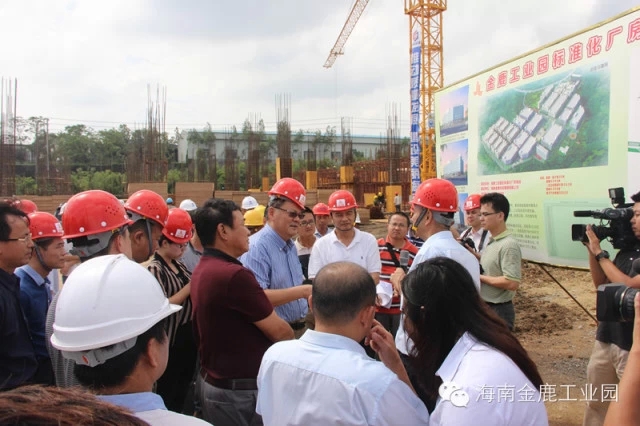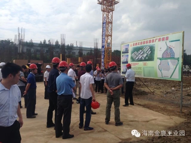 海南金鹿工业园标准化工业厂房项目,一直以来受到市委、市政府、高新区管委会及相关部门的大力支持。10月27日,省委常委、海口市市委书记陈辞,海口市副市长鞠磊,海口国家高新技术产业开发区管委会党工委书记方中里等一行亲临海南金鹿工业园标准化工业厂房项目进行视察。 首先,陈辞书记一行在海南金鹿投资集团有限公司董事长叶茂的陪同下考察了金鹿工业园标准化工业厂房项目一期C16栋的建设情况,最后来到了C8、C9、C10栋施工现场。 在施工现场,叶茂董事长向陈辞书记及各位领导介绍了项目的详细情况。项目于6月28日开始动工,预计年底可以完成一期3万平方米的建设,2015年6月可完成一期工程12万平方米的建设。