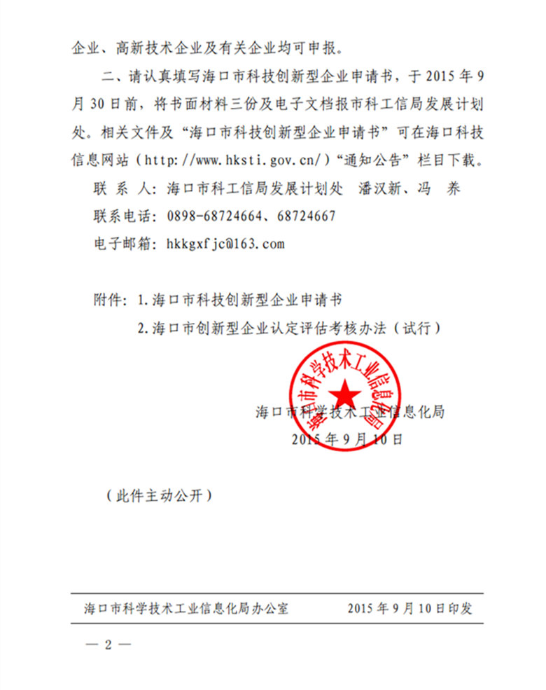 发布时间:2015-09-16 15:04:37 信息来源:海口市科学技术工业信息化局