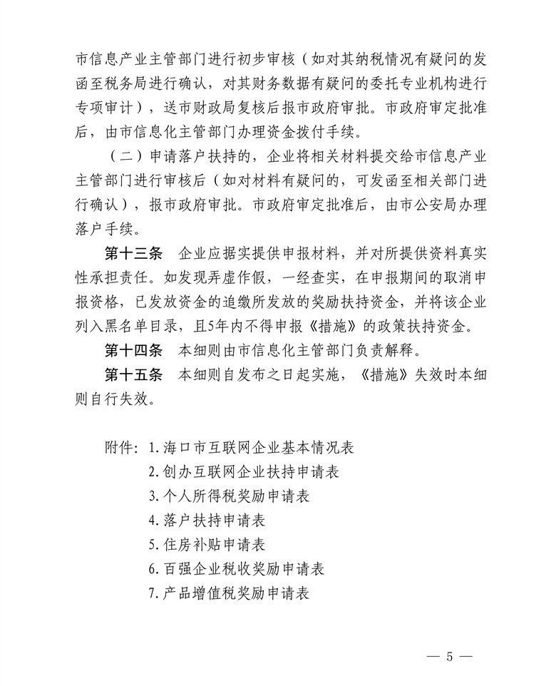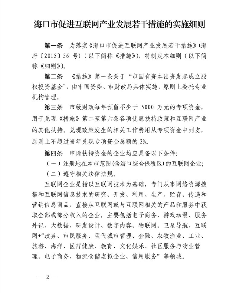海口市人民政府关于印发我市促进互联网产业发展若干措施的实施细则的通知