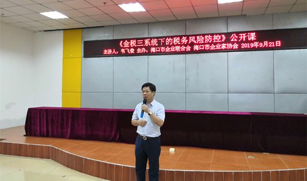 9月21日上午,海口市企业联合会、海口市企业家协会举办“金税三系统下的税务风险防控”公开课在海南金鹿投资集团有限公司会议室举行。 来自罗牛山股份有限公司、海南美都投资有限公司、椰树集团有限公司等会员企业相关部门负责人、财务人员等一百余人参加了公开课学习。 执行会长兼秘书长羊孟元主持并讲话。羊孟元说,随着金税三期在全国的全面推行,以及五证合一、国税地税合并等政策的相继落地,政策的调整变化对企业产生了不同程度的影响。很多企业因缺乏对全新政策的了解,在实际操作中产生诸多疑虑,从而影响了企业税务筹划,甚至给企业造成不必要的损失。为此,今天,海口市企业联合会、海口市企业家协会在此举办“金税三系统下的税务风险防控”公开课,旨在帮助广大会员企业做好税务风险防范。 公开课由我省知名税法专家、海南大华光明税务师事务所所长韦飞俊主讲。在课中,韦所长深度解读了现有政策,并全面剖析了问题原因,为企业提供了行之有效的风险防控措施与应对技巧,帮助企业提前做好人力成本筹划。为时两个小时的公开课,学员认真细致听讲,课堂自始至终座无虚席。 最后,韦所长还与企业代表互动,认真回答企业关心的问题。