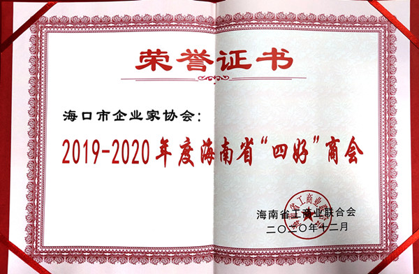会上,海口市企业家协会和来自省级所属商会、市县级所属商会46家被认定为2019-2020年度海南省“四好”商协会并获得表彰。