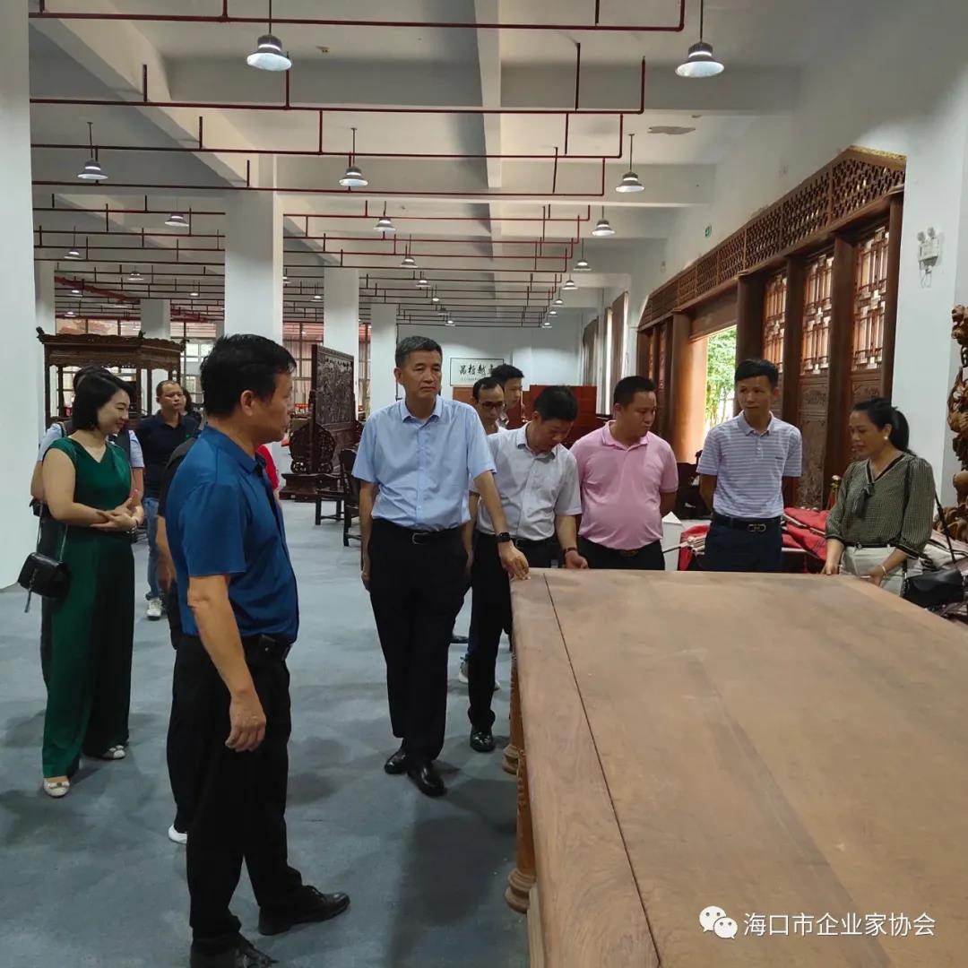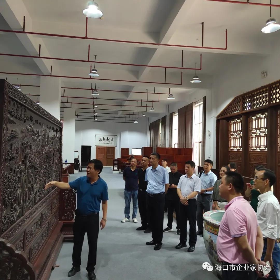 7月29日,应副会长--海南国盛古典家具有限公司董事长吴名光邀请,我会组织企业到海南国盛古典家具有限公司参观交流,会长叶茂,执行会长兼秘书长羊孟元,执行会长阮欣,副会长王清池、吴文,中共海口企联党支部书记毛国新及来自各行业的企业负责人近20人参加了此次红木文化交流活动。