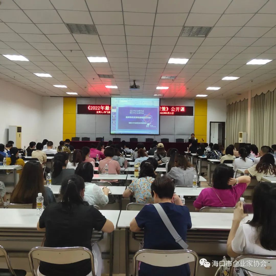 羊孟元说,欢迎各企业负责人及财务人员参加公开课学习。今天,大家牺牲周末宝贵的休息时间来参加学习,很让我们感动也深受鼓舞。许多会员企业,多年来,历经各种风雨,不仅没倒下,朝着做大做强的目标,行稳致远地发展,这与包括在坐的财务人员与时俱进学习各种政策法规,孜孜不倦钻研业务努力向前,加强税务风险防范,作出的努力分不开。海口企联成立十五年来,在此成功举办了13场税法公开课,都离不开广大会员企业的厚爱,以及海南金鹿投资集团有限公司、海南大华光明税务师事务所及韦飞俊老师给予的宝贵支持。在此,我代表海口企联再次表示衷心的感谢!