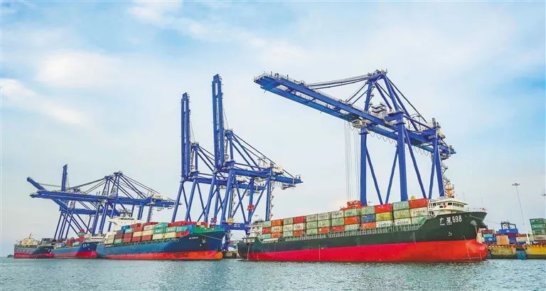 9月2日,在洋浦国际集装箱码头,几艘轮船停靠在港口装卸集装箱。海南日报记者 陈元才 摄