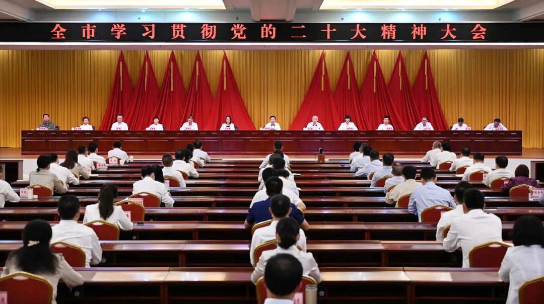 10月24日下午,全市学习贯彻党的二十大精神大会召开,强调要更加紧密地团结在以习近平同志为核心的党中央周围,全面贯彻党的二十大各项决策部署,推动党的二十大精神在海口落地生根、开花结果,为全面建设社会主义现代化国家、全面推进中华民族伟大复兴积极贡献力量。省委常委、市委书记罗增斌传达并讲话。