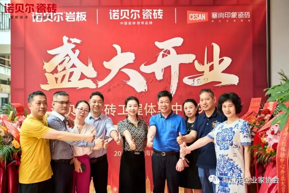 3月29日上午,海口市企业联合会、海口市企业家协会执行会长兼秘书长羊孟元出席理事单位海南宏威建材有限公司举办“海南首家·诺贝尔瓷砖工程体验中心”开业仪式,出席本次活动的有副会长谢杨、王孙文以及部分会员企业代表。