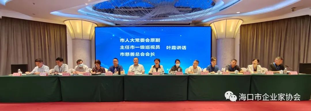 叶霞向为海口经济社会发展和为海南自贸港建设作出重要贡献的全市企业家致以崇高的敬意和衷心的感谢!为协会和企业发展提四点希望。一、把握方向,政治引领,做跟党走的引路者;二、抢抓机遇、促进发展,做创新创业的引路人;三、强化责任、回报社会,做和谐社会的建设者;四、提升水平、办好协会,做服务发展的推动者。