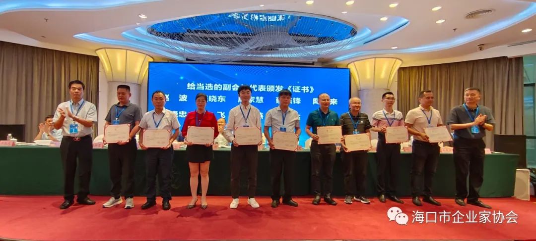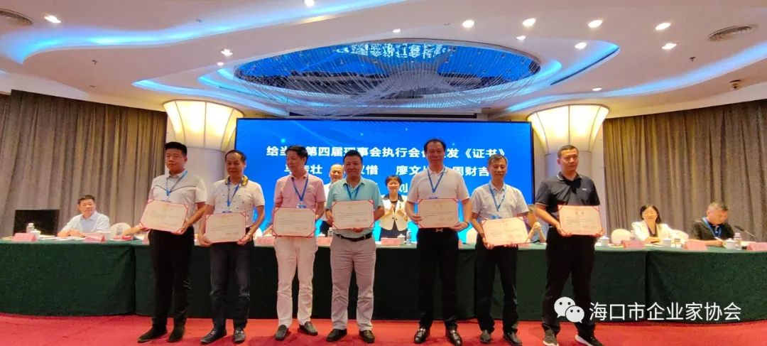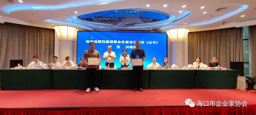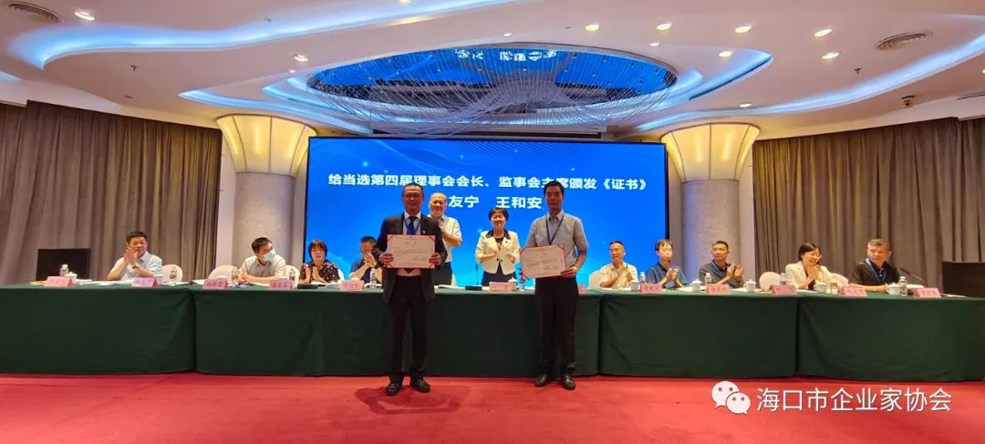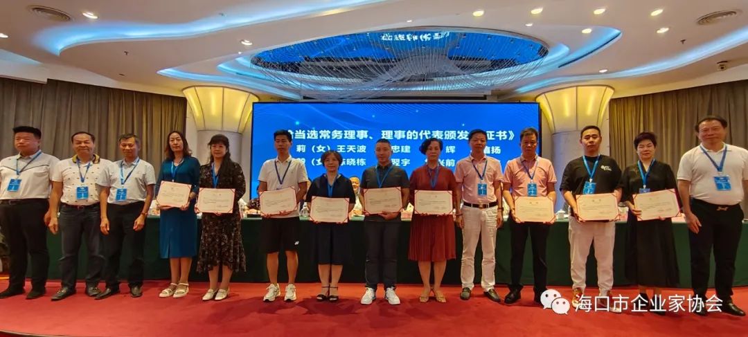 大会号召,全市企业家要紧密团结在党中央周围,在省委市委坚强领导下,高举旗帜,坚定信心,不忘初心,牢记使命,埋头苦干,勇毅前行,为加快推进海南自贸港核心区和现代化国际化新海口建设不懈奋斗! 大会选举产生了海口市企联企协第四届理事会第二届监事会和新的领导班子,选出理事84人,选举叶茂、洪钢炉为第四届理事会名誉会长,选举韩友宁为第四届理事会选会长,选举马传壮、周财吉、廖文川、刘汉惜、谢昭辉、马龙潭、刘远为第四届理事会执行会长,选举王和安为第二届监事会主席,选举赵波等为第四届理事会副会长、选举黄少场等为第二届监事会副主席。选举羊孟元为执行会长、秘书长、法定代表人(专职)。