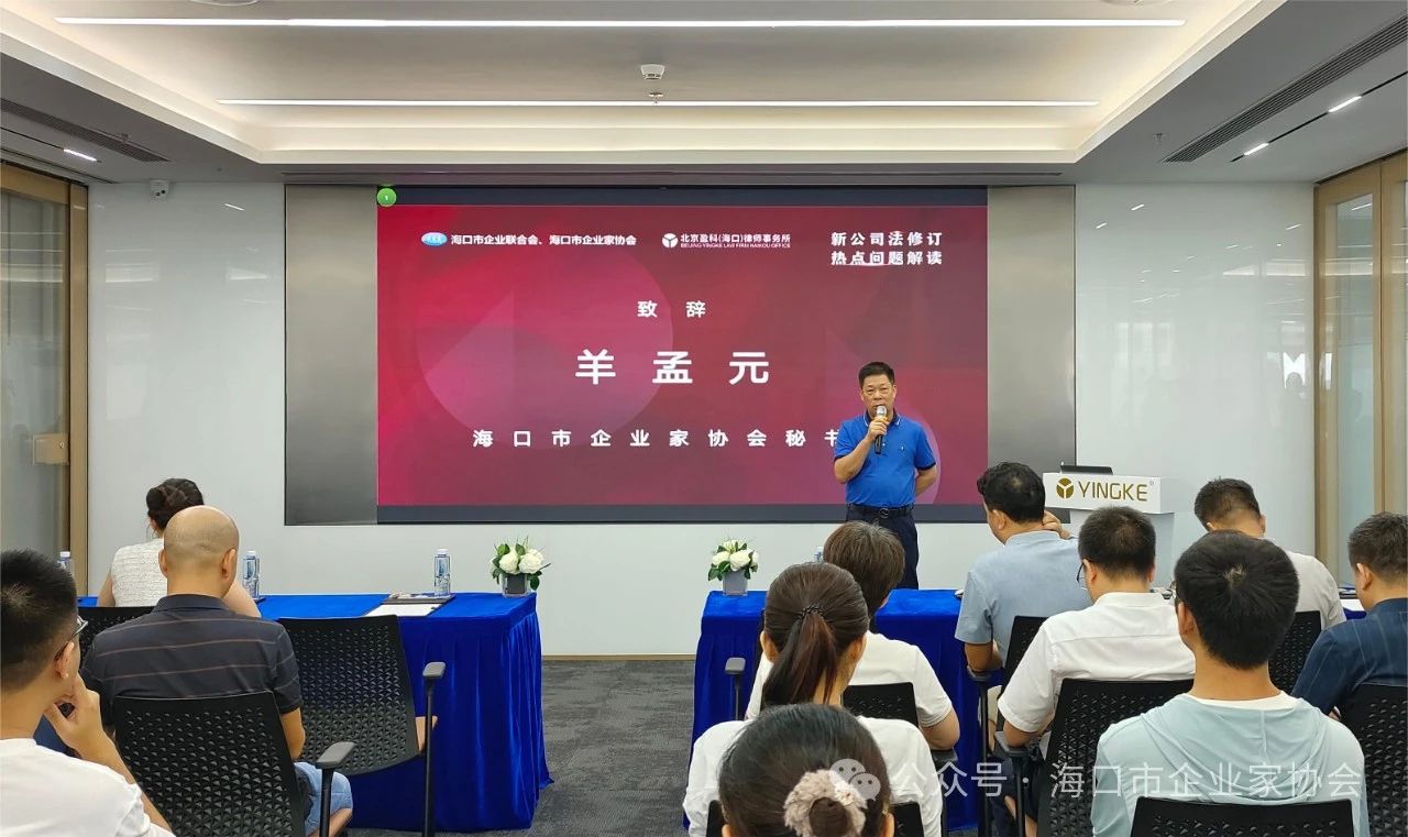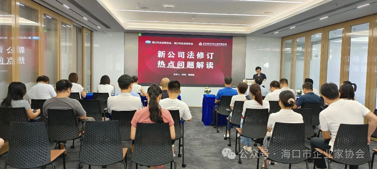 7月12日下午,市企联企协、北京盈科(海口)律师事务所联办“新公司法修订热点问题解读”公开课。