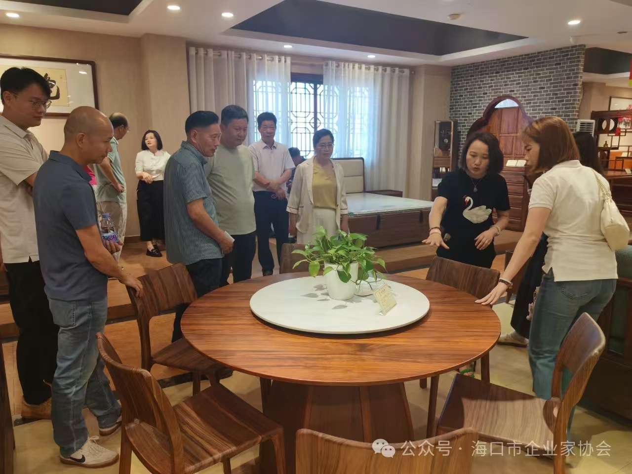 4月24日下午,海口市企业联合会、企业家协会执行会长兼秘书长羊孟元带领协会部分会员企业负责人到副会长单位一海南新艺宝家具有限公司参观交流,受到王孙文董事长等公司领导的热情欢迎。