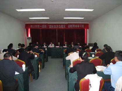 1月28日至29日,市委统战部在定安县南丽湖举办全市统一战线“国际旅游岛建设”战略精神学习班。经过两天的理论学习,我市统一战线各民主党派、有关人民团体达成共识,倡议建设国际旅游岛要从我做起,从自己的本职工作做起,积极围绕国际旅游岛建设做好参政议政工作,为海口经济又好又快发展建言献策。